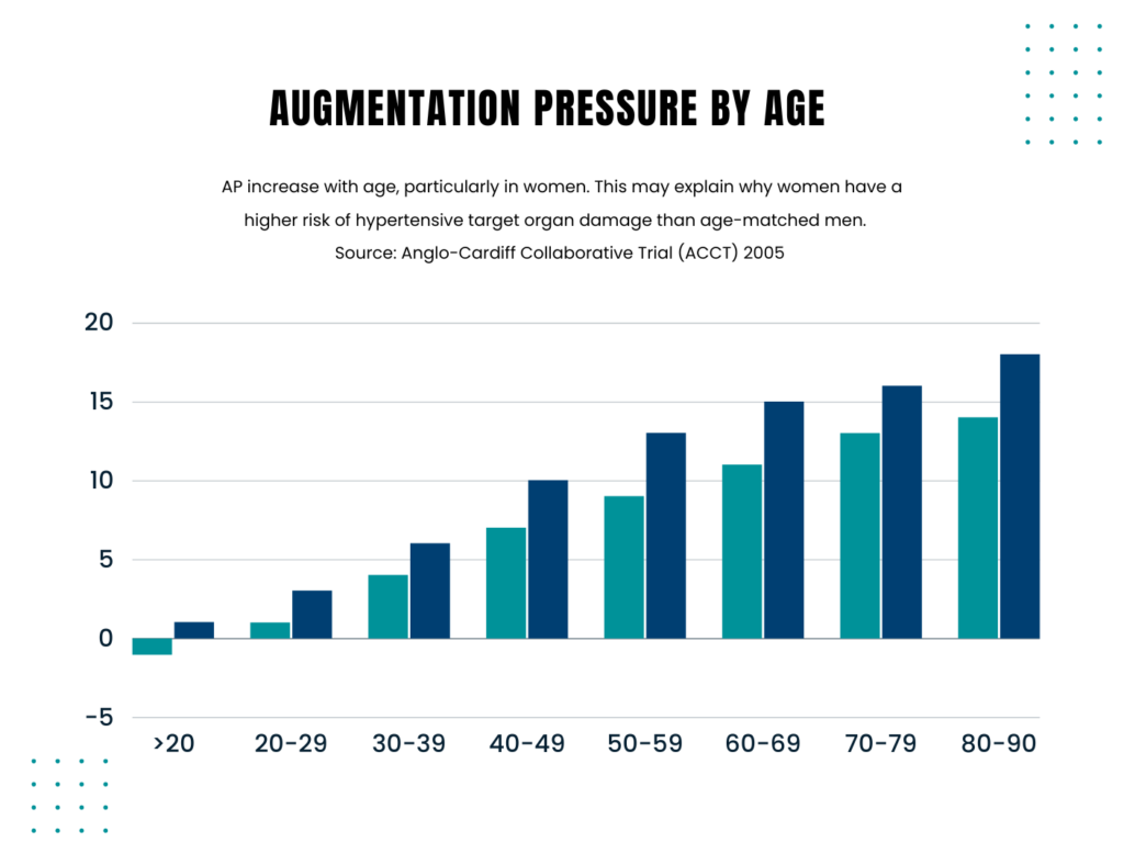 Several factors can influence AP, including age, lifestyle, and medical conditions. Our arteries naturally become stiffer as we age, leading to higher augmentation pressure. Lifestyle choices, such as diet, exercise, and smoking, can all impact arterial stiffness and AP. Additionally, there is an association between conditions like hypertension, diabetes, and chronic kidney disease and increased arterial stiffness and higher AP. Monitoring one’s augmentation pressure can also help tailor medication to improve arterial health. For example, certain medications, such as ACE inhibitors and calcium channel blockers, have been shown to reduce arterial stiffness and lower augmentation pressure.